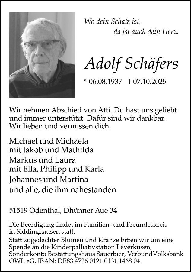 Adolf Schäfersgestorben am 7. Oktober 2025