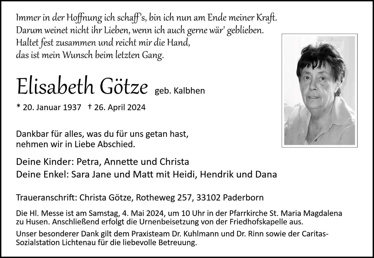 Elisabeth Götzegestorben am 26. April 2024