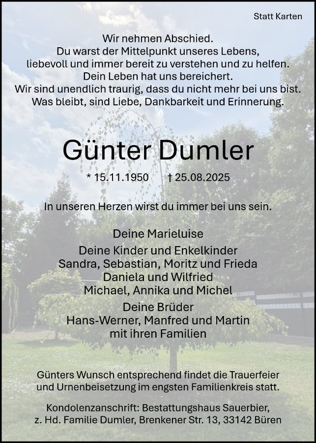Was bleibt, sind Liebe, Dankbarkeit und Erinnerung.