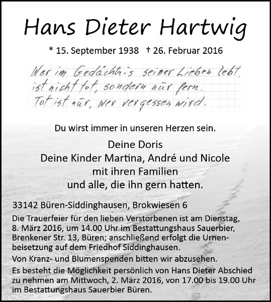 Hans Dieter Hartwiggestorben am 26. Februar 2016