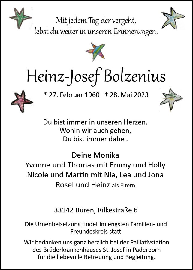 Heinz-Josef Bolzeniusgestorben am 28. Mai 2023