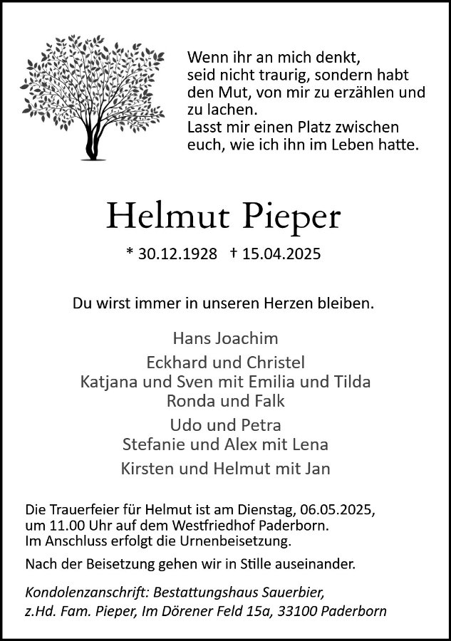 Helmut Piepergestorben am 15. April 2025