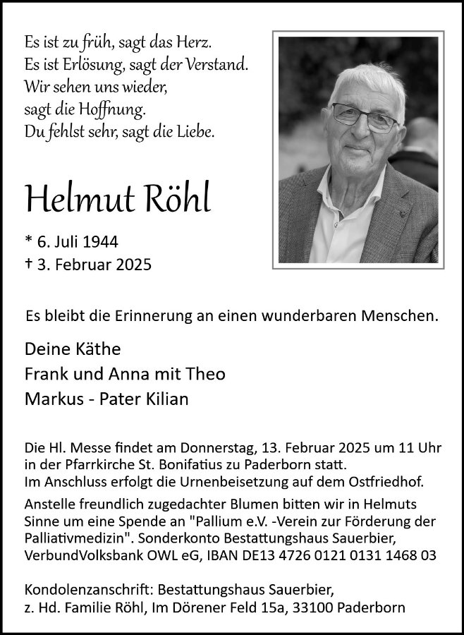 gestorben am 3. Februar 2025 in Bad Lippspringe