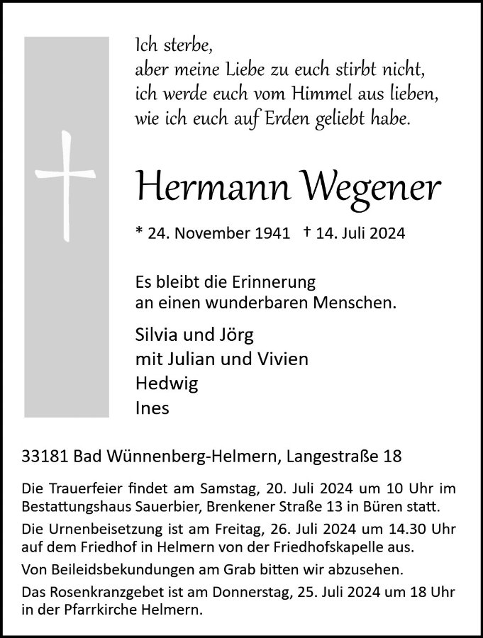 Hermann Wegenergestorben am 14. Juli 2024