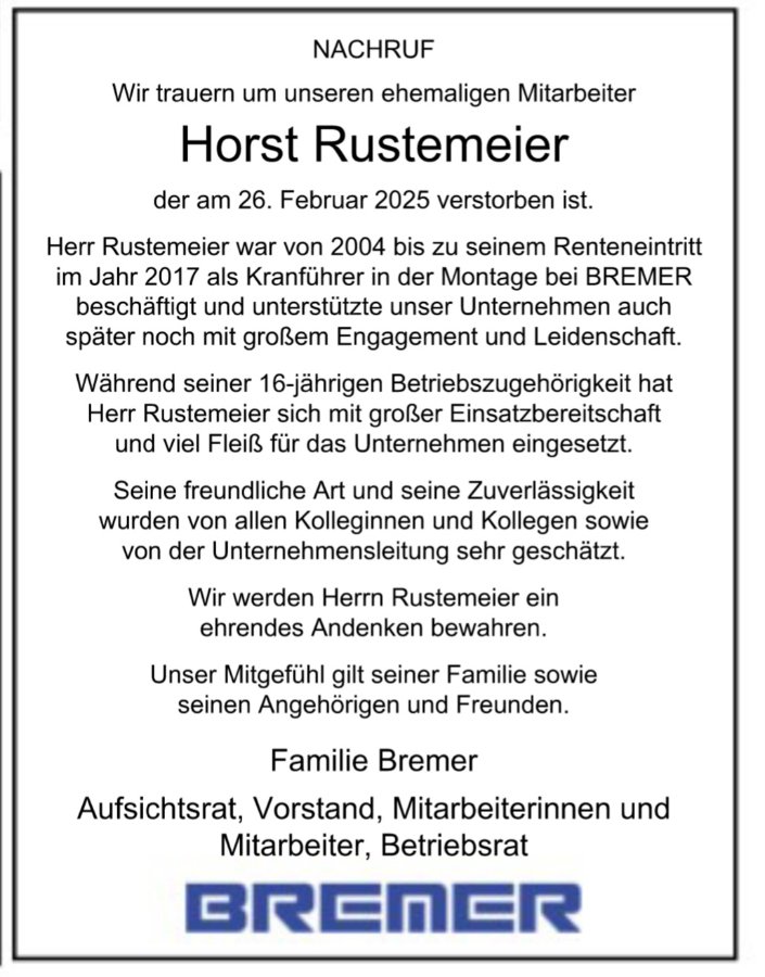 Horst Rustemeiergestorben am 26. Februar 2025
