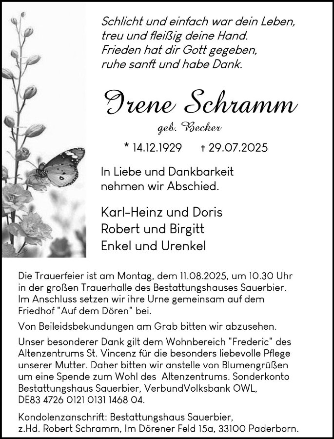 Irene Schrammgestorben am 29. Juli 2025