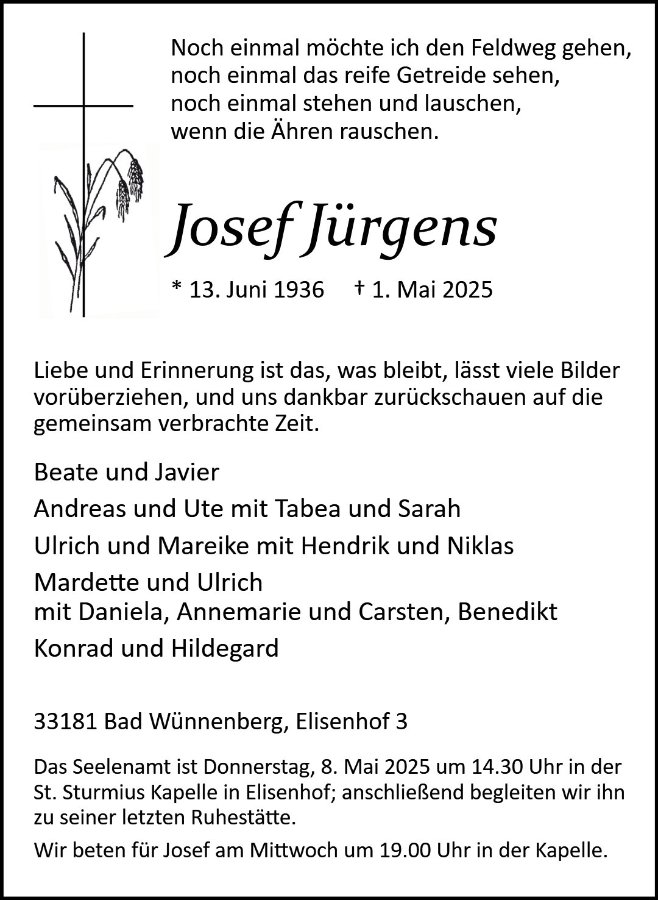 gestorben am 1. Mai 2025 in Bad Wünnenberg