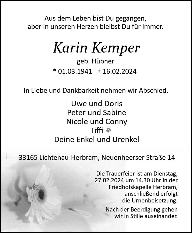 Karin Kempergestorben am 16. Februar 2024