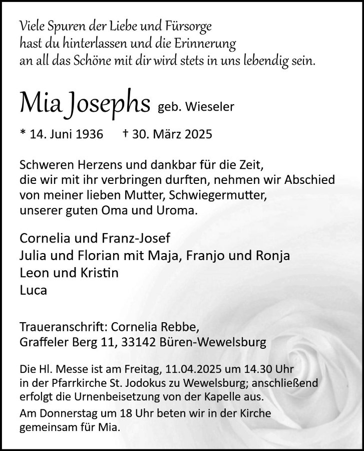 Mia Josephsgestorben am 30. März 2025
