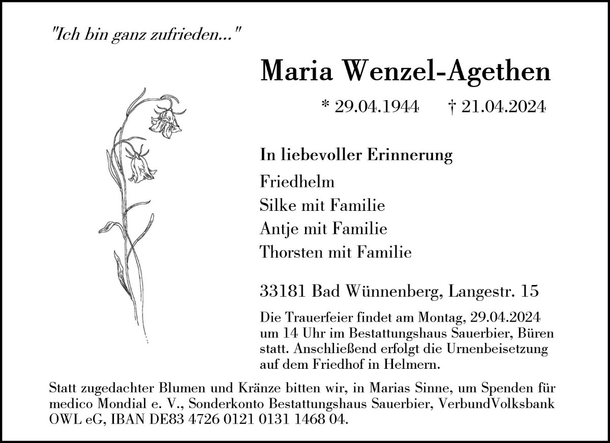 Maria Wenzel-Agethengestorben am 21. April 2024
