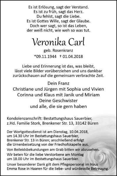 Veronika Carlgestorben am 1. April 2018