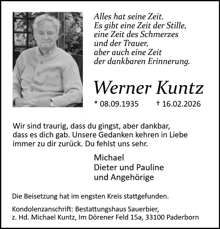 Werner Kuntzgestorben am 16. Februar 2026
